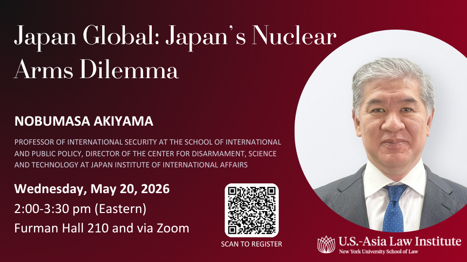 During the postwar period Japan was well known for its active role in promoting nuclear disarmament and its anti-war constitution. However, increasing security threats from China and North Korea caused a reevaluation of Japan’s security needs and a new emphasis on deterrence. How can Japan support both nuclear disarmament and nuclear deterrence? Nobumasa Akiyama, professor at the School of International and Public Policy and the Graduate School of Law at Hitotsubashi University (Tokyo), director of the Center for Disarmament, Science and Technology at the Japan Institute of International Affairs, and a leading expert on Japan’s nuclear arms policy, will discuss how Japan’s policy might reconcile these conflicting interests and the likely effect of Japan’s nuclear policy on regional and global efforts aimed at both nuclear arms control and collective security.