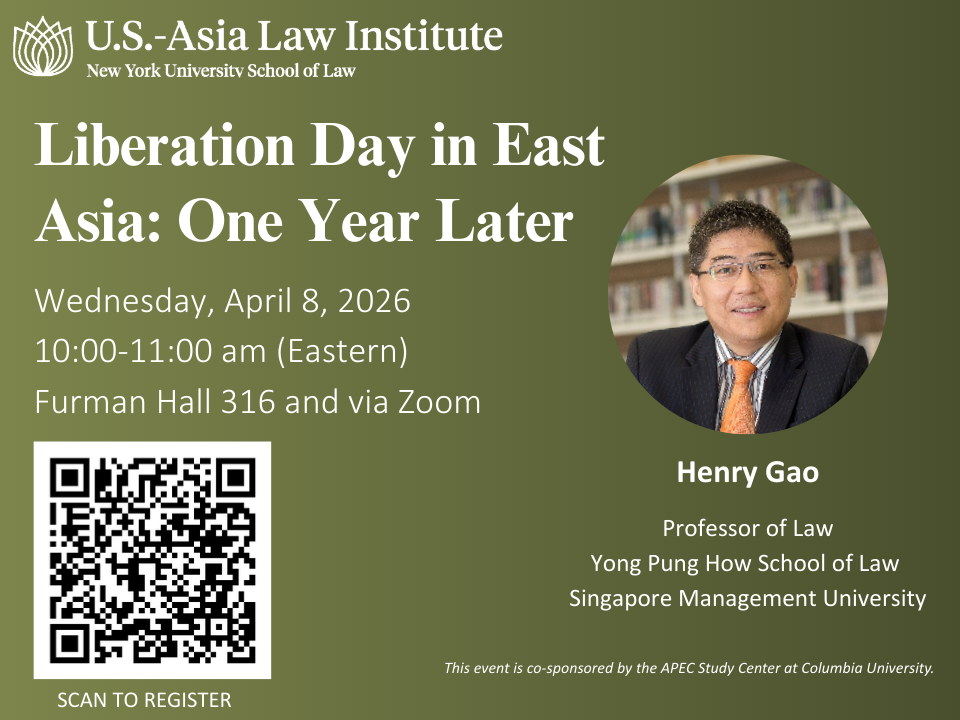 Twelve months ago, President Donald Trump declared “liberation day” and launched a tariff war against the entire world, including key American trade partners in East Asia. Over succeeding months, additional tariffs were announced, modified, and withdrawn against countries and specific goods, such as steel and aluminum. Henry Gao, law professor at Singapore Management University and a trade expert, will take stock of the lasting impact of Trump’s weaponization of tariffs on East Asia and the global trading system. He also will ask whether the tariff war could bring a silver lining: the opportunity to finally address long-festering problems with the old trade system.