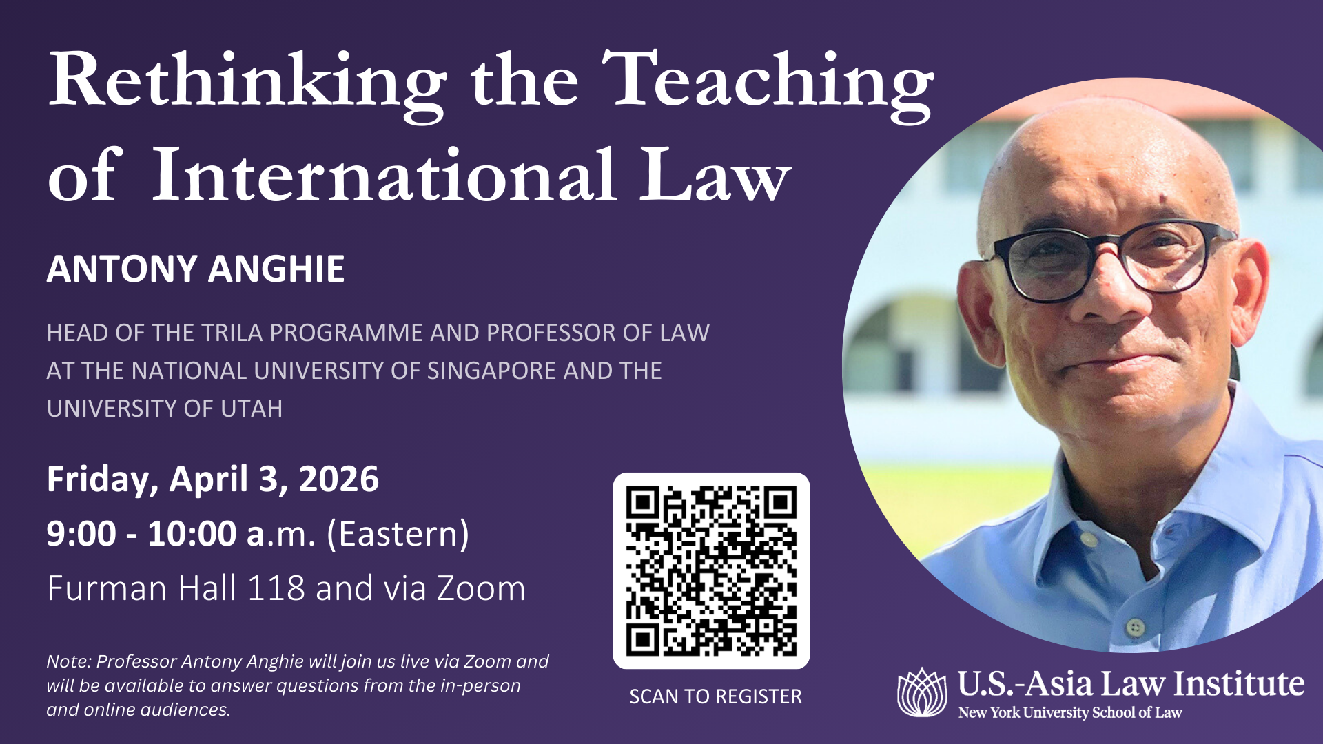 The Teaching and Researching International Law in Asia (TRILA) programme, based at the Centre for International Law at the National University of Singapore, builds on a decades-long tradition of advancing and enhancing the teaching and researching of international law in Asia. More than the strengthening and fostering of teaching and research cultures, TRILA also aims to cultivate a vibrant community of international law scholars across the Asian region. Tony Anghie, the head of TRILA will reflect on the evolution and impact of TRILA and explore the changing landscape of legal academia in Asia. The conversation will situate TRILA within the broader Global South and international efforts to rethink the teaching of international law and the role of Asian scholars in changing and reshaping international law.
