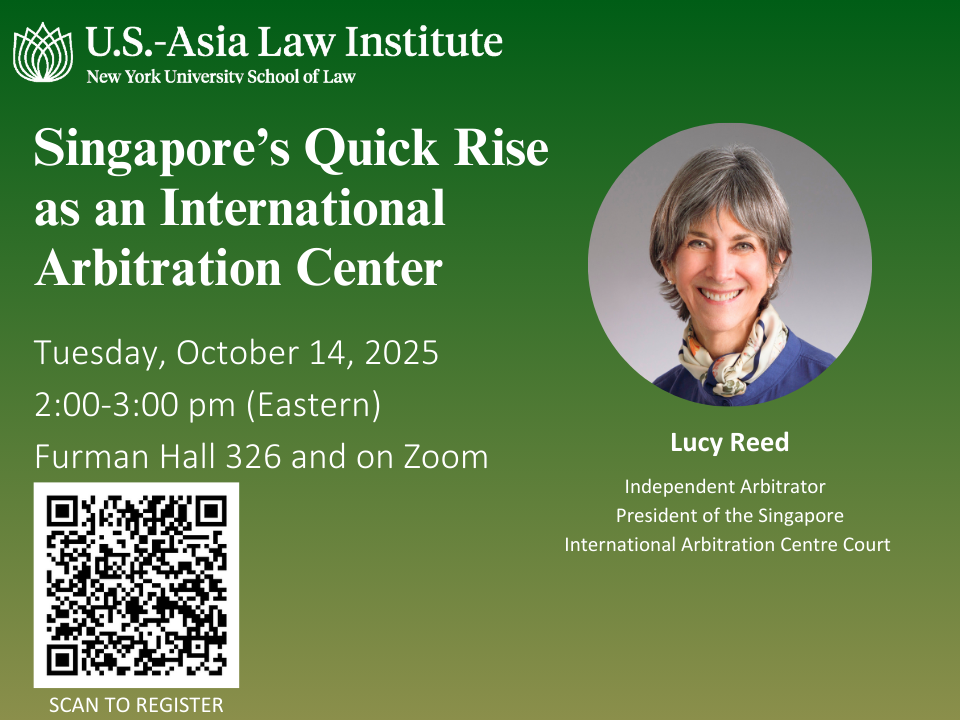Singapore now ranks with Paris and London among the top three venues for international arbitration, despite being much newer on the scene. Lucy Reed, president of the Singapore International Arbitration Centre Court (SIAC), a prominent arbitrator and international lawyer, will explore the reasons, which include government commitment, supportive legislation, first-rate courts, Maxwell Chambers, SIAC, and a truly international outlook.