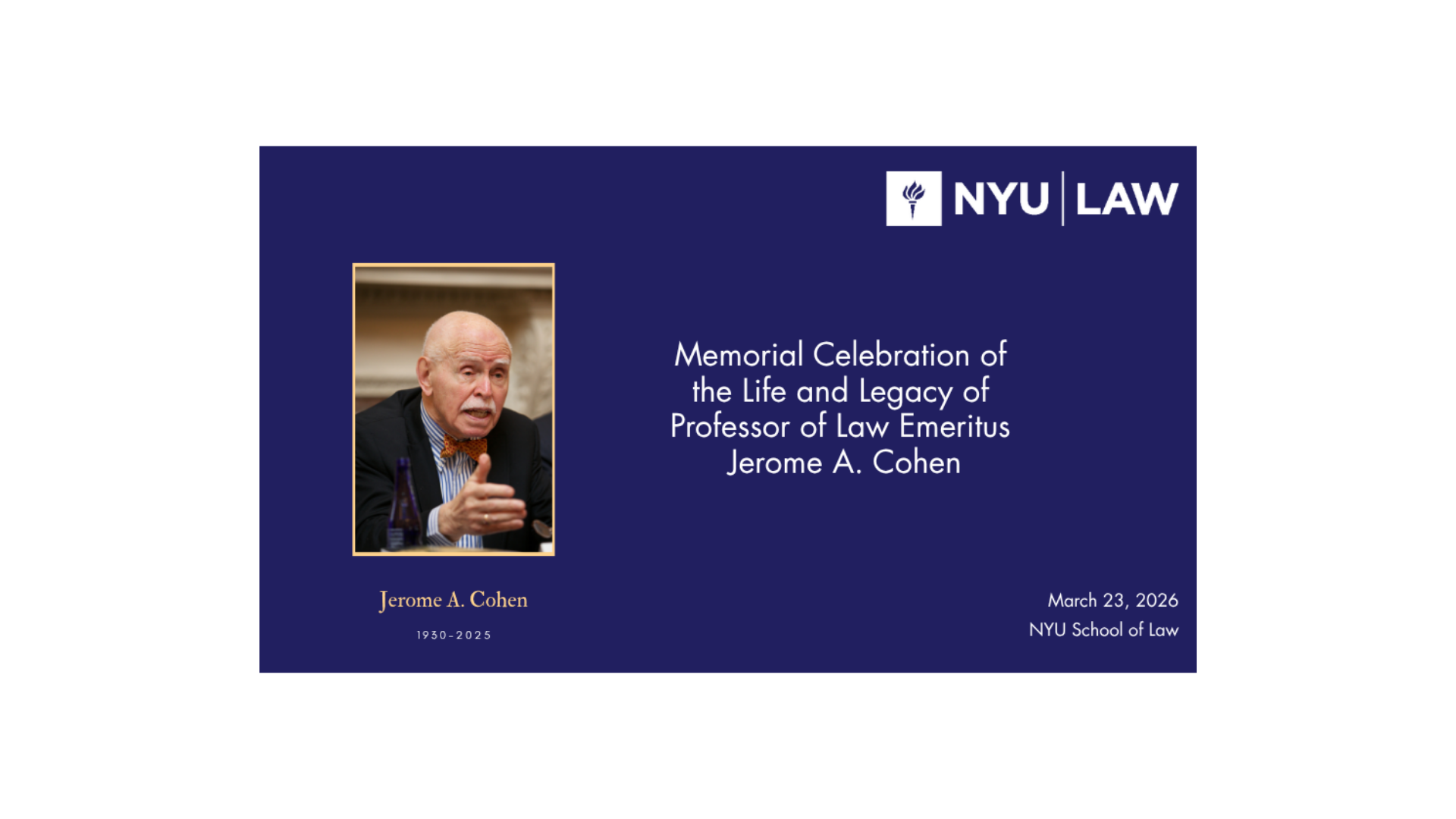 NYU School of Law: “In memoriam: Jerome A. Cohen (1930-2025),” Sept. 24, 2025